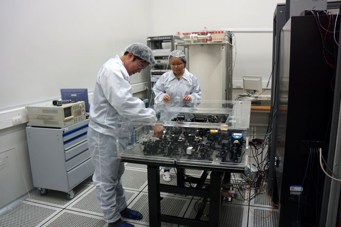 获奖项目:新一代国家时间频率基准的关键技术与应用 主要完成人:房芳,李天初,张爱敏,陈伟亮,高源,刘年丰,林平卫,梁坤,刘昆,王伟波,林弋戈,所睿,李明寿,宁大愚,高小珣 主要完成单位:中国计量科学研究院 推荐单位:国家质量监督检验检疫总局 获奖等级:国家科技进步奖一等奖 项目简介: 时间是人类经济和社会活动的基础,是金融、交通和科研等领域不可或缺的计量单位。作为7个基本量之一,时间的测量准确度远远高于其它6个量。在国际单位制重新定义中,其它基本量已经(长度、电压)或正试图通过基本物理常数的定义由时间频率导出,并将于2018年实现这一方案。因此时间频率成为表征世界最为基本的物理量。该项目的研究立足开发新一代秒长国家计量基准NIM5喷泉钟和原子时标国家计量基准UTC(NIM),建立独立自主的国家时频体系源头,积极参与国际原子时合作,彰显中国的大国地位和担当,同时保障我国经济建设和国防的时频量值准确统一。 NIM5喷泉钟利用精准控制频率功率的9束激光和超低相位噪声微波对原子进行操控和测量,并在理论指导下对影响钟跃迁频率的各项物理效应评定修正,得到基准频率。该团队通过对物理、微波和评定方法的一系列创新,使得最终绝对频率准确度2000万年不差1秒,同时提高了整机运行可靠性,2014年通过国际评审,参与驾驭国际原子时,使中国在国际原子时合作中第一次具有了表决权。UTC(NIM)时标基准通过创新的传递技术及算法,提高了稳定度及准确度,增加了对国际原子时计算的权重。 主要科技创新包括:1)提出了高精度空间立体角光学结构的设计方法,发明了磁光阱装置一体化制造技术,实现了直接光学阻尼制备高数量超低温度冷原子,获得高信噪比,探测噪声接近量子极限,准连续运行率创世界最高水平。2)创建了泄露微波对原子能级影响的理论模型,提出飞行下落原子限域计算方法,开发了实时测量-补偿干涉开关脉冲微波相移的技术,将微波泄漏频移抑制到小于1?10-16。国际频率基准工作组的报告显示NIM5平均频率距全世界喷泉钟频率总平均值最接近。3)提出了浮点模糊度解算的已知定点单差模型,解决了亚纳秒级时频传递的模糊度和钟差解算问题,实现了全球导航卫星系统(GNSS)载波相位时间频率传递技术。自主研制了GNSS时间频率接收机,成功主导了国际上首次欧亚多台铯原子喷泉钟的比对。4)提出了守时钟频率精准预估修正方法,创建了长短期联合优化驾驭系统模型,UTC(NIM)与世界协调时UTC的时差优于±5 ns。首次实现了喷泉钟直接驾驭原子时标,代表了国际守时技术发展新趋势,使中国成为世界上少数具有独立准确时间频率体系的国家之一。 秒长国家基准NIM5和原子时标国家基准UTC(NIM)一起保证了国内时间频率量值的准确统一。利用光纤链路和GNSS链路,将该团队的秒长基准和时标基准传递到北京卫星导航中心,直接为军用标准时间和北斗地面时提供溯源支持。同时为中央电视台、中科院武汉物数所、上海横河国际贸易有限公司等多家部队单位、科研院所和高端企业提供时间频率的量值测量、溯源和校准。在研期间授权发明专利5项;国家计量检定系统、规程及规范4部;新增国际互认测量能力23项。