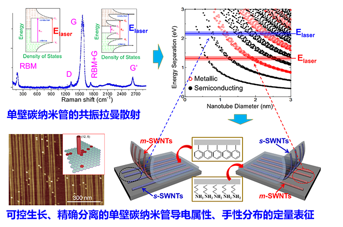 获奖项目:低维碳材料的拉曼光谱学研究 主要完成人:张锦(北京大学),刘忠范(北京大学),童廉明(北京大学),彭海琳(北京大学) 推荐单位:专家推荐 获奖等级:国家自然科学奖二等奖 项目简介: 碳纳米管和石墨烯等低维碳材料有望在未来半导体、微纳电子和能源等领域发挥核心作用,是主导未来高科技产业竞争的战略材料。对其基本结构与性质的深入研究是能否取得引领性和原创性研究突破的关键环节。拉曼光谱技术在低维碳材料的发现以及结构与性能的研究中发挥了不可替代的重要作用。该项目以低维碳材料的拉曼光谱学研究为主线,关注低维碳材料结构与物性的微区拉曼表征、石墨烯增强拉曼散射和低维碳材料能带调控中的电子-声子耦合特征等基本科学问题,在科技部纳米重大研究计划和国家自然科学基金委的支持下,开展了持续而系统的研究,取得如下主要成果: 1)发展了单壁碳纳米管的结构控制制备方法及其结构与物性的微区拉曼光谱表征技术:针对单壁碳纳米管手性控制生长及其结构表征这一世界难题,发展了单壁碳纳米管结构与物性的微区拉曼光谱表征方法,实现了单壁碳纳米管的金属/半导体性和手性结构的高分辨定量研究,获得了单根单壁碳纳米管的生长速度和温度系数等本征物性参数;在此基础上,提出了手性控制的“碳基催化剂”概念和单壁碳纳米管的克隆生长方法,突破了传统的“气-液-固”生长模型,建立了新的“气-固”生长模型,从而实现了单壁碳纳米管手性控制的突破。 2)发明了石墨烯增强拉曼光谱技术:针对表面增强拉曼光谱技术在定量和微量检测中信号不均一这一长期挑战,提出了石墨烯增强拉曼散射的概念,证明了石墨烯增强拉曼散射的化学增强机制;发展了高品质石墨烯的偏析与Ni-Mo等合金催化化学气相沉积制备技术和石墨烯的无损转移技术,获得了严格单层的大面积石墨烯;在此基础上发展了基于石墨烯的柔性拉曼散射增强基底的制备方法,首次实现了任意形貌表面上痕量物种的直接检测,为表面增强拉曼散射的定量研究开拓了新的思路。 3)发展了低维碳材料能带调控与拉曼光谱研究方法:提出了单壁碳纳米管能带结构的应力调控方法,研究了不同形变下碳纳米管能带结构与其电子-声子耦合特征的关联性,首次证实了应力条件下碳纳米管能带结构随手性的变化规律;提出了低维碳材料能带结构的光化学调控方法,实现了石墨烯的片层裁剪、逐层减薄、石墨烯到氧化石墨烯的定域转化以及碳纳米管从金属性到半导体性的转化等系列调控方法,为低维碳材料在未来电子器件中的应用奠定了基础。 该项目共发表论文82篇,其中8篇代表性论文包括Chem. Soc. Rev. 1篇、Acc. Chem. Res. 1篇、J. Am. Chem. Soc. 2篇、Proc. Natl. Acad. Sci. 1篇、Adv. Mater. 1篇和Nano Lett. 2篇,论文他引1138次,其中3篇入选ESI高引用文章。这些论文在Chem. Rev.、Nature、Science、Nat. Chem.、Nat. Photonics、 Nat. Nanotechnol.和Chem. Soc. Rev.等刊物中有大量的正面评述。此外,相关成果也获得了Nature China、C&E News、NPG Asia Materials等重要学术媒体的高度评价。相关成果受邀在国际会议上作邀请报告20人次。授权专利16项。 单壁碳纳米管的控制制备与微区拉曼光谱的定量表征 基于石墨烯的平整基底拉曼散射增强技术 纳米碳材料能带的应力和光化学调控规律及其拉曼光谱研究 |