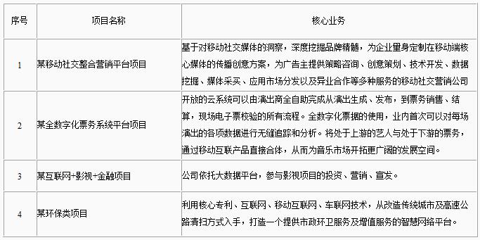 “高端装备领域金融综合服务平台”下运行的北京原创客股权投资基金管理中心已经成立,目前基金处于储备项目调研阶段,暂无投资案例。 邀请专家来自于中国电影评论学会产业研究中心、中视金桥国际传媒集团、中国电影集团、蓝色光标品牌创构中心、中国传媒大学新媒体研究院、北京航空航天大学数字新媒体与艺术学院、北方工业大学信息工程学院计算机系、杭州湖畔山南投资管理公司等影视文化、数字技术及相关产业投资机构。 |